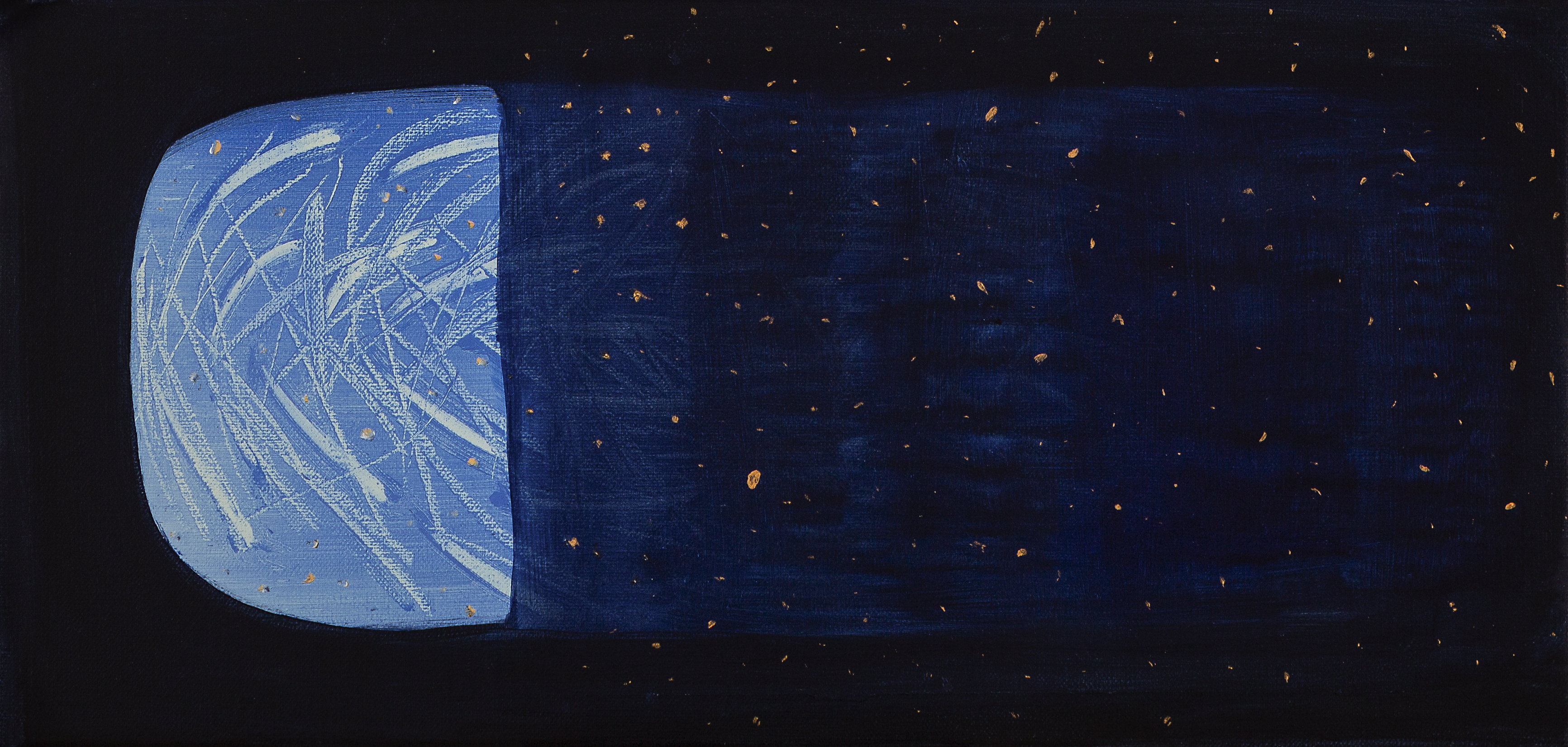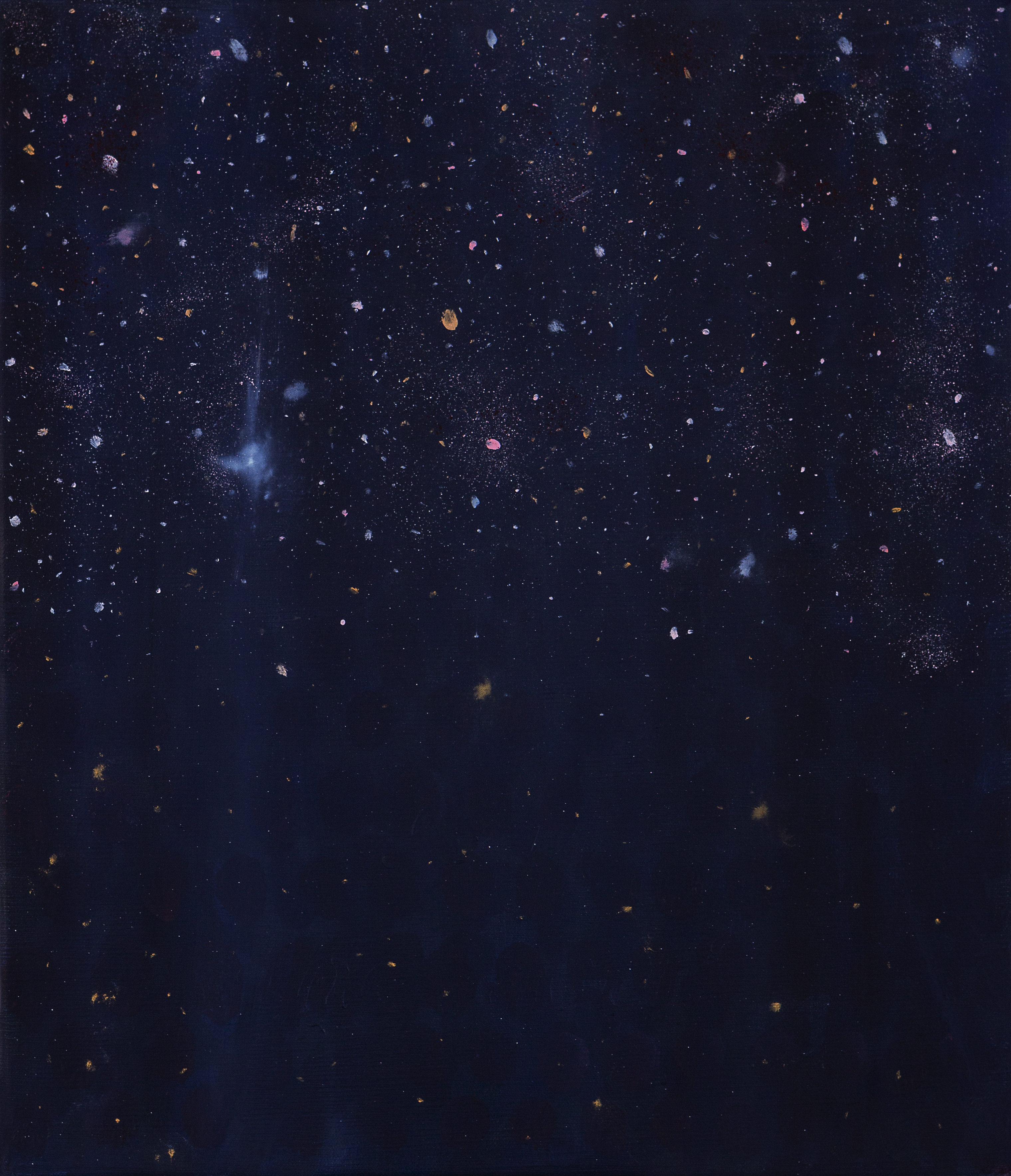 Paisajes cósmicos, mares y montañas estrelladas, flora y fauna alunada, cielos invertidos, encuentran su amalgama en un clima incierto, allí donde algo real o imaginado amenaza.